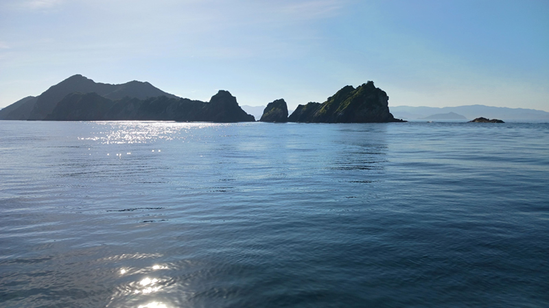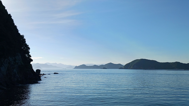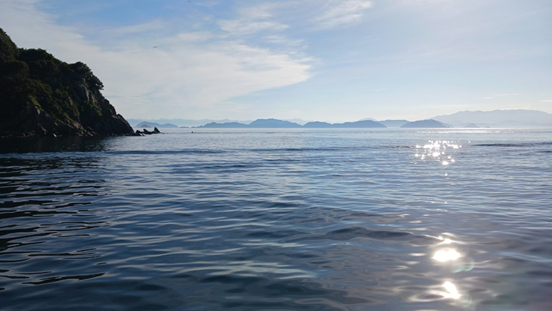 日振島の海(2;朝が早い。太陽が水面を照らす)
