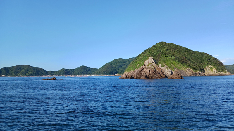日振島:断崖、海蝕洞、岩礁群が多く、磯釣りのメッカでもある。