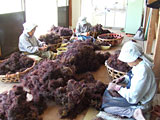 伊豆には前日入りし、各漁協をまわって現状確認をした。漁協の方々によれば今年は原藻にベトやスミ、カキ等が多くついているとのコメントが多かった。これは6月になり急に暖かくなった為ではないかとのことであった。実際に確認すると確かにその傾向が若干見られたが、粗改良(付着物を除去する作業・写真下)が行われた天草は良質な寒天質が期待できる上質なものであった。また等級が低い天草であっても、藻体がこまかかったり、アオの量も少なかったりと、品質が良い草が多々あり、やはり事前の確認は重要である。