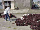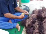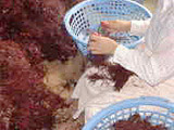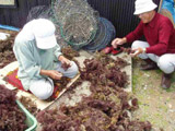 特に、伊豆地区では他地区ではおこなっていない選別作業(写真)をおこなっていて最上級のテングサとして流通している。 |