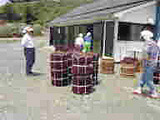 午前9時から午後2時まで途中、休憩を1時間ぐらいとりながら操業する。平均で1人、水揚げ量は200kg、乾燥して約60kgであるが、熟練者なるとその3倍くらいは採るという話であった。