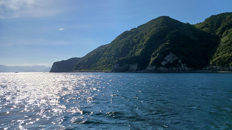 日振島の海(7;急峻な岩壁が海に落ち込む)