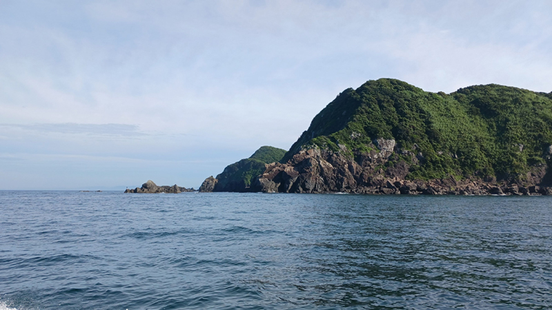 日振島:断崖、海蝕洞、岩礁群が多く、磯釣りのメッカでもある。